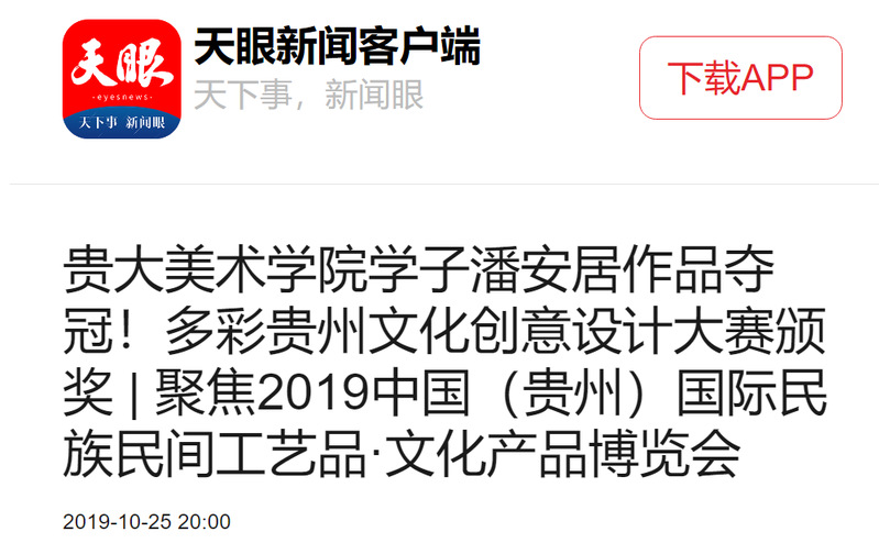 10月25日,多彩贵州文化创意设计大赛颁奖典礼在贵阳举行,活动现场颁发了金奖1名、银奖2名、铜奖3名。