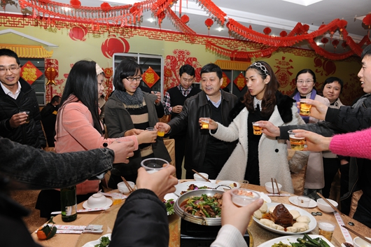 校学生处、学生资助管理中心、招生就业处、校团委、研究生工作部、国际教育学院等部门负责同志以及留校本科生、研究生、留学生50余人参加新春团拜会。