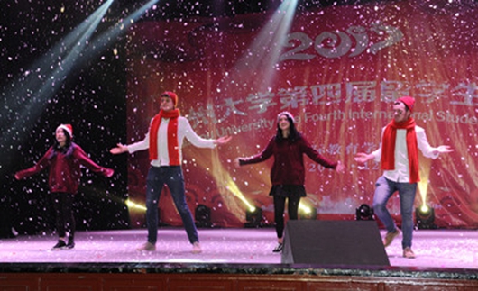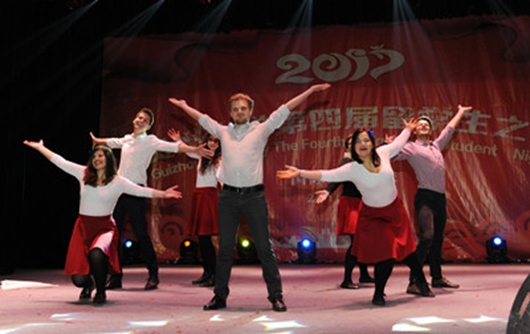12月15日晚,来自美国、立陶宛、哥伦比亚、蒙古国、老挝、加拿大的留学生,作为主持人抄着洋腔洋调的汉语,启开贵州大学举行第四届“留学生之夜”晚会的帷幕。