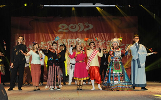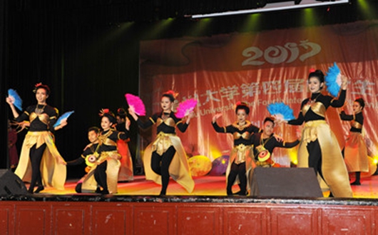 在这台晚会上,来自世界各国的学生们用载歌载舞的形式,将多元浪漫的欧洲古典文化、自由豪迈的游牧民族文化,更有着古老神奇的美洲玛雅文化、神秘婀娜的东南亚宗教文化……挥洒在贵州大学兼容并蓄、百花齐放的国际画布上。