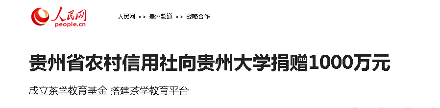 1月18日,“贵州大学农信茶学教育基金”捐赠仪式在贵州大学文化书院举行。贵州省农村信用社捐赠1000万元,助力贵州大学搭建茶学教育平台,发展贵州茶学文化。
