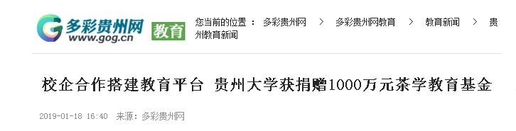贵州省农村信用社捐赠1000万元成立“贵州大学农信茶学教育基金”