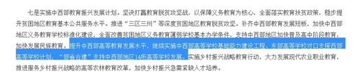 提升中西部高等教育发展水平,继续实施中西部高等学校基础能力建设工程、东部高等学校对口支援西部高等学校计划,‘部省合建’支持中西部地区14所高等学校发展。