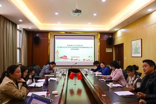 3月22日上午,贵州民族大学人文科技学院马克思主义学院在大学城校区召开座谈会,学习贯彻习近平总书记在学校思想政治理论课教师座谈会上的重要讲话精神。