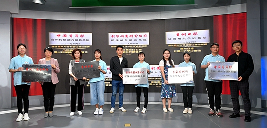 同时,贵州大学文学与传媒学院、音乐学院、美术学院、明德学院等4个学院实习实践基地也在溪山融媒中心挂牌。会议还对学校2018年度十佳新媒体、新闻网优秀供稿单位及优秀通讯员进行了表彰。融媒中心学生记者带来了题为《我骄傲,我是校媒人》的配乐诗朗诵,展现了校园记者的青春和热情。