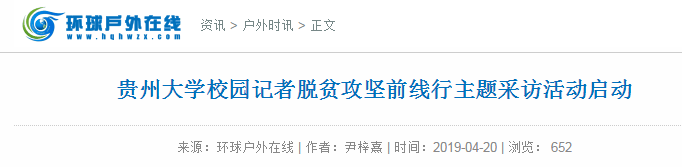 环球户外在线讯:近日,由贵州大学学校党委宣传部组织开展,“致敬壮丽七十年·脱贫攻坚写答卷”校园记者脱贫攻坚前线行主题采访活动近日正式启动,进一步深入宣传贵州大学助力脱贫攻坚的典型人物和感人故事。
