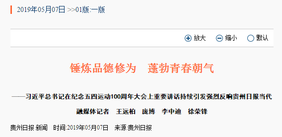 “我们要将‘锤炼品德修为’这一人生的扣子从一开始就扣好,就要脚踏实地,坚持奋斗,推己及人,懂得自省。树立正确的三观,学习英雄人物和青年榜样的优良品质,有一分热,发一分光,一步一个脚印,在时代大潮下,不忘初心锤炼品德修为。”贵州大学文学与传媒学院2017级学生郑雅方说,100年前,“五四运动”爆发,千千万大学生关切祖国命运,体察世间冷暖,互相奔走呼号;100年后的今天,我们当代大学生面对美好生活,更要常怀感恩之心,学好专业知识,在学习生活中弘扬和践行社会主义核心价值观,修身而后治国平天下。