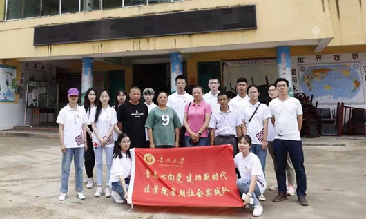 为积极响应习近平总书记关于全面依法治国重要讲话的相关号召,增进公民的学法热情,贵州大学法学院本科生代表赴贞丰县开展为期四天的暑期社会实践活动,助力对口帮扶地区教育扶贫和法治扶贫。