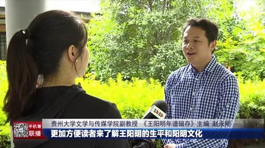 视频报道推介由贵州大学出版社出版,贵州大学哲学与社会发展学院教授、贵州大学出版社副社长、贵州大学中华传统文化与贵州地域文化研究中心兼职研究员龚晓康,贵州大学文学与传媒学院副教授、贵州大学中华传统文化与贵州地域文化研究中心兼职副研究员赵永刚共同主编的《王阳明年谱辑存》一书,主编之一赵永刚接受专访。