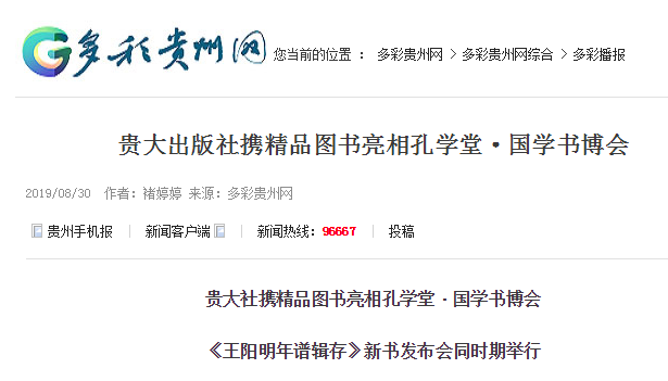 近年来,贵州大学出版社充分利用各方优质资源,搭建好阅读交流平台,积极打造新时代特色国学文化,扩大中华优秀传统文化的影响力、渗透力,充分发挥出版人在构筑“精神高地”中的积极作用,传承好中国精神。