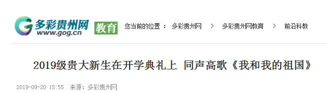 “我和我的祖国,一刻也不能分割,无论我走到哪里,都流出一首赞歌……”9月20号,贵州大学2019年新生开学典礼在西校区体育场隆重举行。万余名新生手举旗帜,高唱《我和我的祖国》,庆祝祖国70岁生日,庆祝即将开启大学生活。