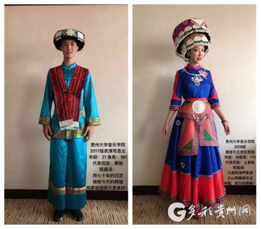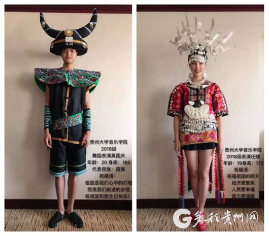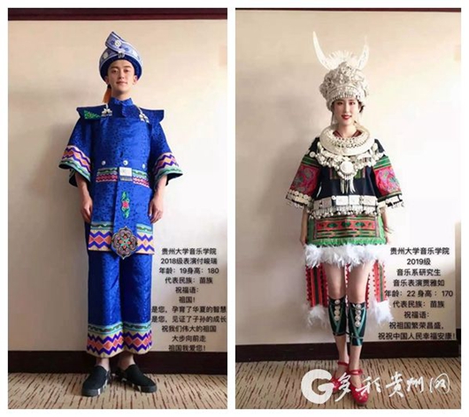 16位“贵州代言人”,来自贵州大学音乐学院,经过层层选拔,最终被确定代表贵州参加庆典活动。他们中“最年长”的音乐系研究生学姐出生在1997年,新中国成立50周年庆典的时候才刚刚两岁;最小的“零零后”,60周年庆典的时候还在上小学。
