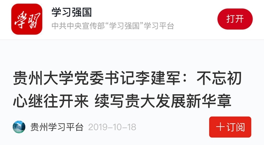 为深入学习领会习近平总书记重要讲话精神,贯彻落实贵州省庆祝中华人民共和国成立70周年座谈会精神,10月9日,全省宣传文化系统“铭记历史,感恩奋进,续写新时代贵州发展新篇章”座谈会在贵阳举行,会上,贵州大学党委书记李建军就“不忘初心继往开来 续写贵大发展新华章”作主题发言。