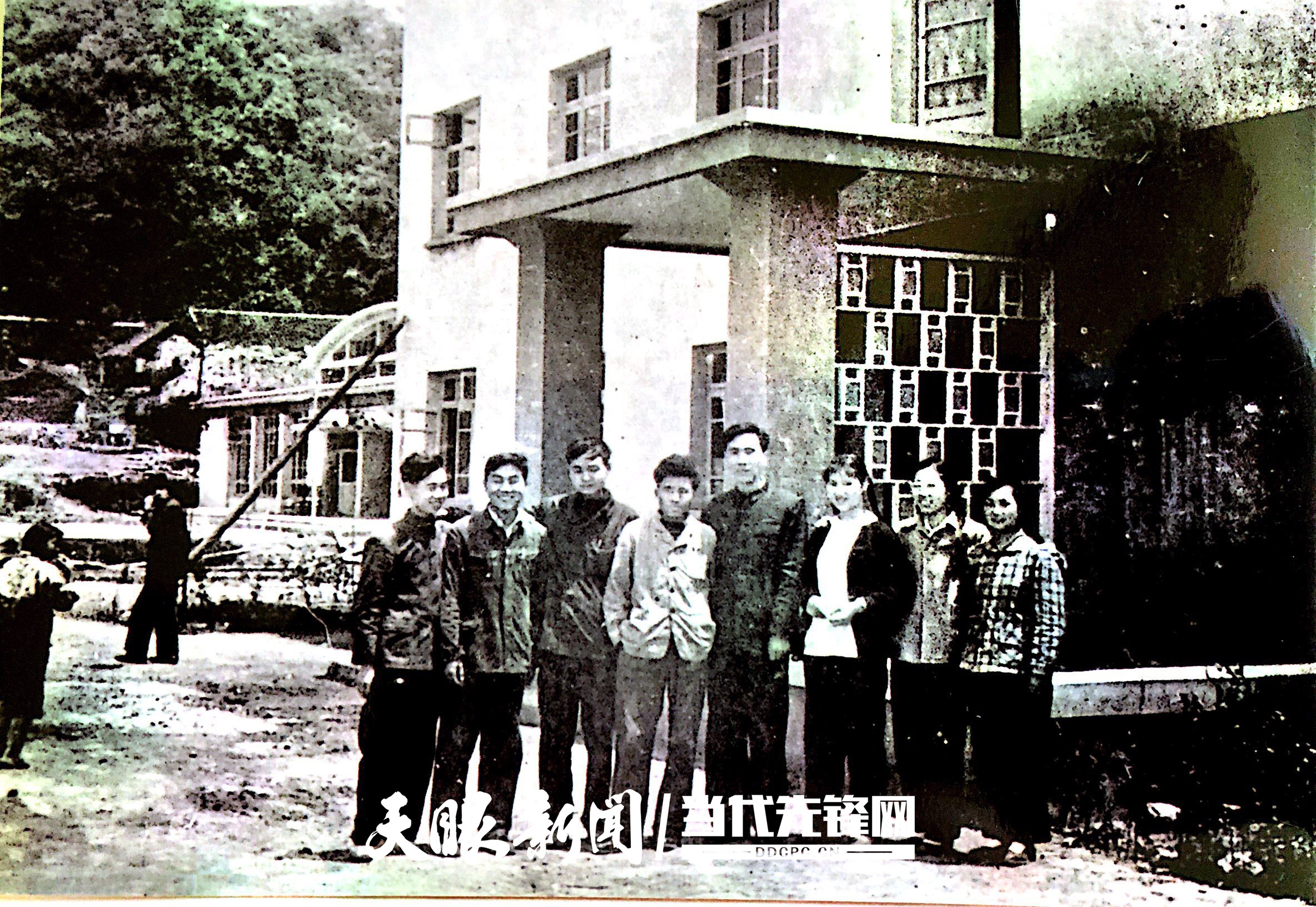 1961年,马克俭(左三)和同事在自建宿舍合影。