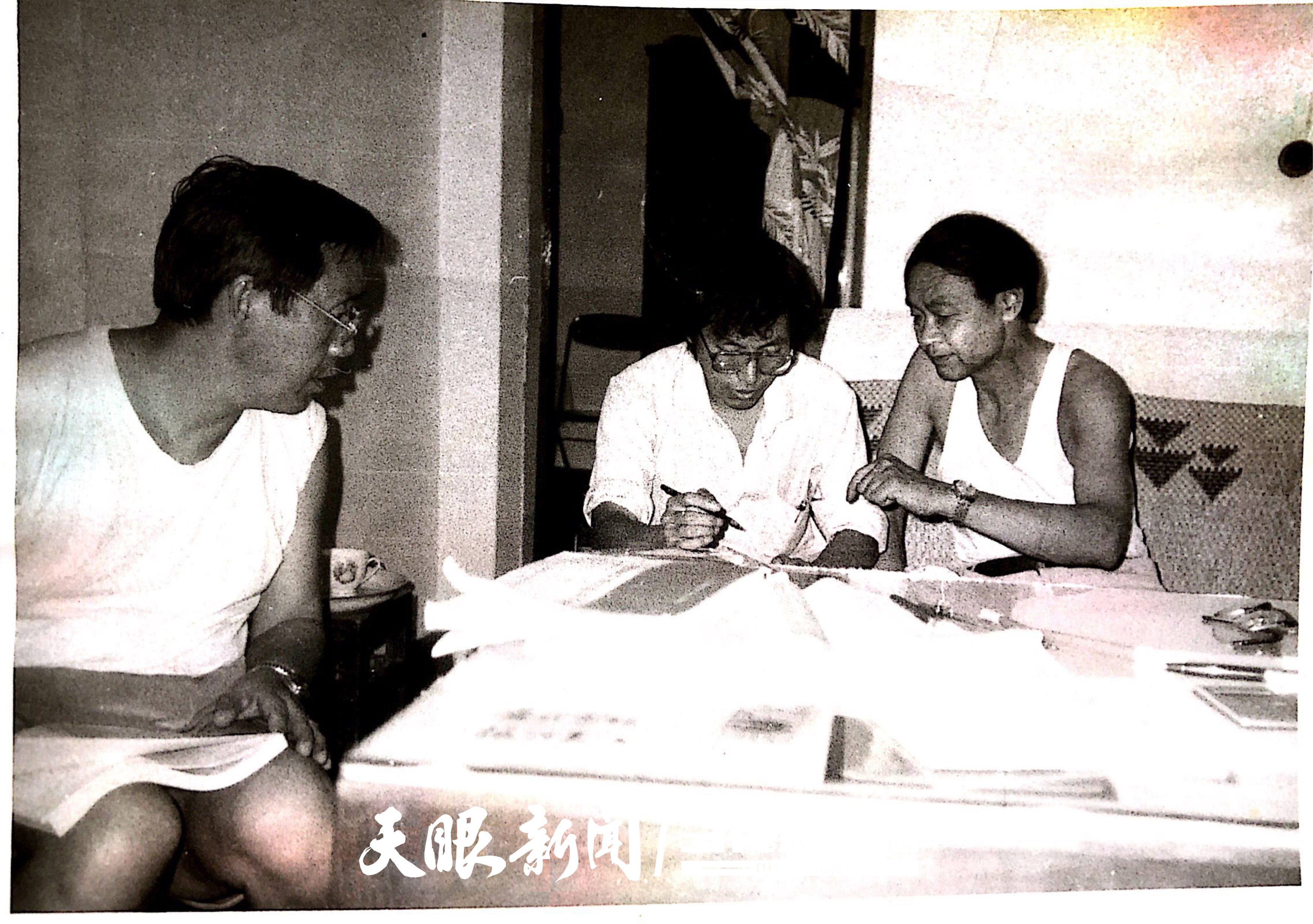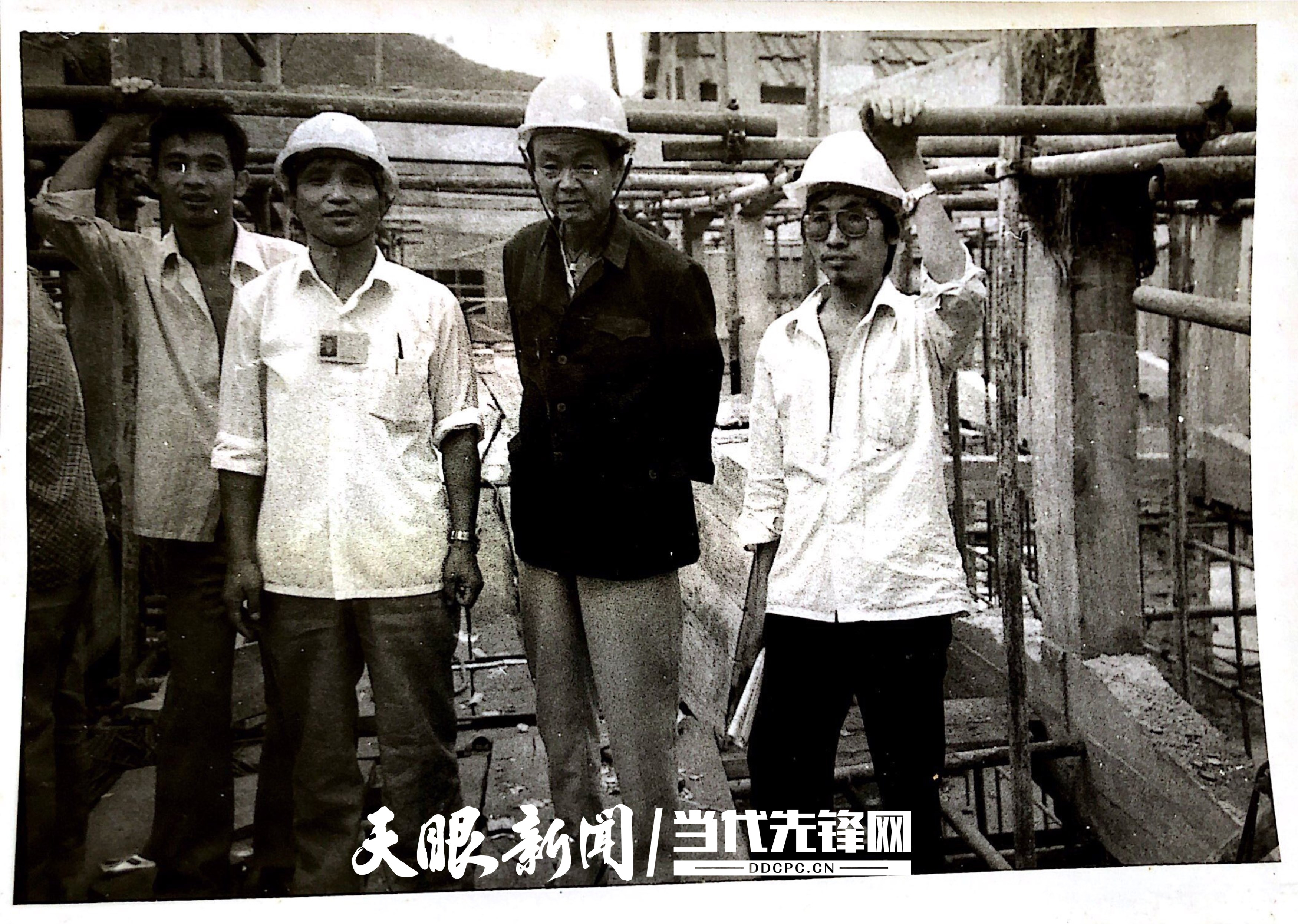 1984年,马克俭(右二)去施工现场查看工程进度。