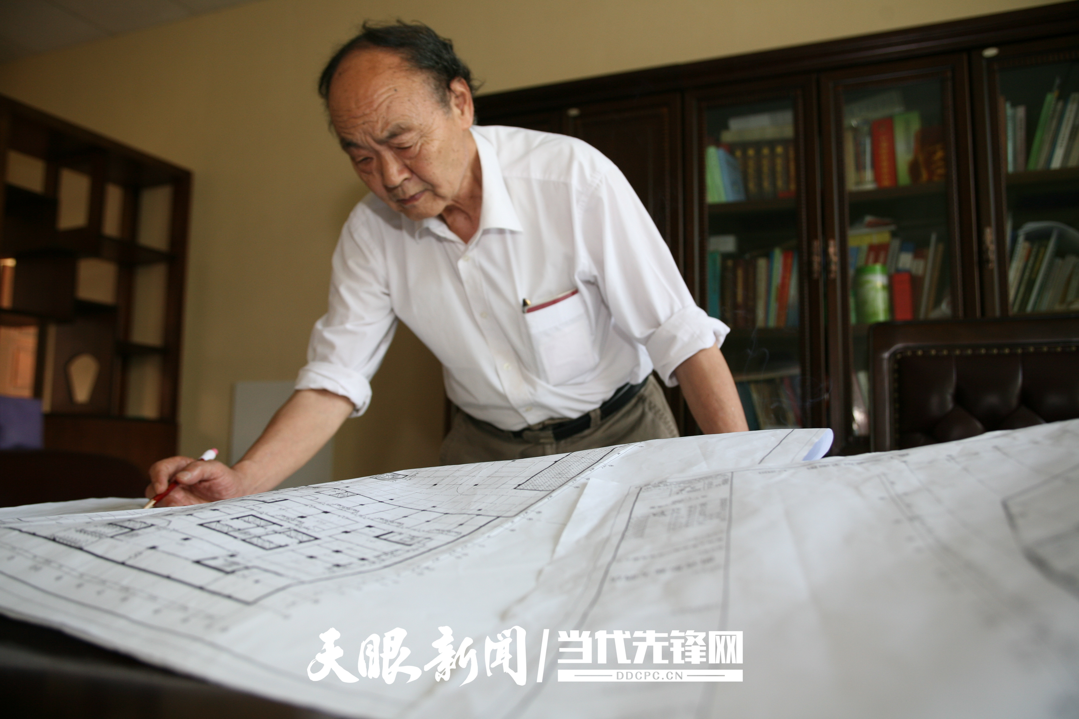 走进贵州大学空间结构研究中心一楼办公室,一张极大的办公桌位于中央,桌面上铺满了重重叠叠的图纸,一位面容慈祥、精神矍铄的老人正拿着铅笔、三角板、丁字尺、圆规在制图板上绘制图纸。