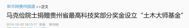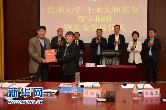 10月30日,刚获得贵州省最高科学技术奖的中国工程院院士、贵州大学教授马克俭,将其中的20万元奖金捐赠给贵州大学,设立贵州大学“土木大师基金”。