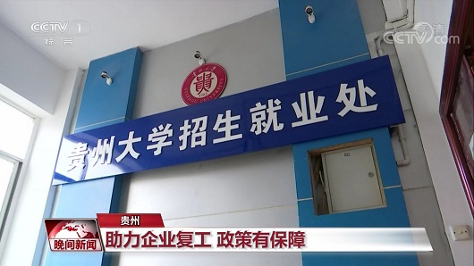 3月17日,中央电视台《晚间新闻》播报,为保障大学生就业以及为各大企业复工复产提供更多人才保障,贵州大学开发了网络就业支持系统,并举行校园网上专场招聘会。