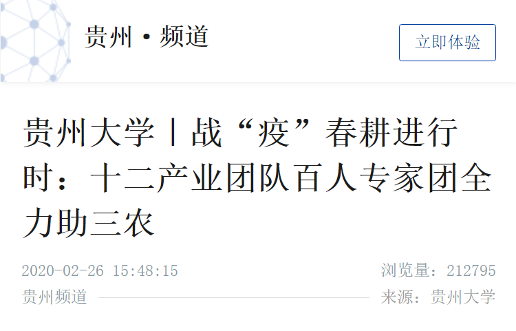 为进一步为广大农民朋友搭建起疫情期间服务三农的平台,进一步科学引导农民投身春耕生产,进一步提供有效的农业技术指导和服务,现将贵州大学十二支产业团队专家百人团名单面向社会进行公布,为贵州省保春耕提供全程技术服务支撑。