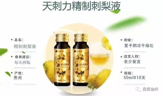 贵州天刺力集团公司,是一家专业从事刺梨种植、研发、加工、生产及销售为一体的的民营企业。先后推出:刺梨果汁饮料、刺梨茶饮料、刺梨全汁发酵酒、精制刺梨液、刺梨源片等刺梨系列产品。公司依托专业的产品研发团队、成熟的加工技术、严苛的工艺流程,最大限度地保留了刺梨的营养成分,产品口感果香浓郁、酸涩适中。在市场上,无论是知名度、渠道、销量,还是消费受众上都具有明显优势。