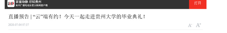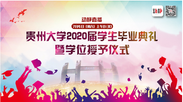 今天(7月4日)08:30,贵州大学2020届学生毕业典礼暨学位授予仪式将在贵州大学西校区阅湖广场举行。本次典礼分为主会场和分会场,毕业生将通过网络收看的方式,参与这次特别的毕业典礼。贵州广播电视台官方客户端动静APP将进行全程直播。