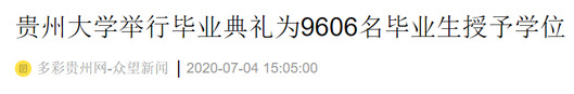 据了解,贵州大学2020届共有9606名学生毕业,其中博士研究生37名,硕士研究生2667名,本科生6902名。