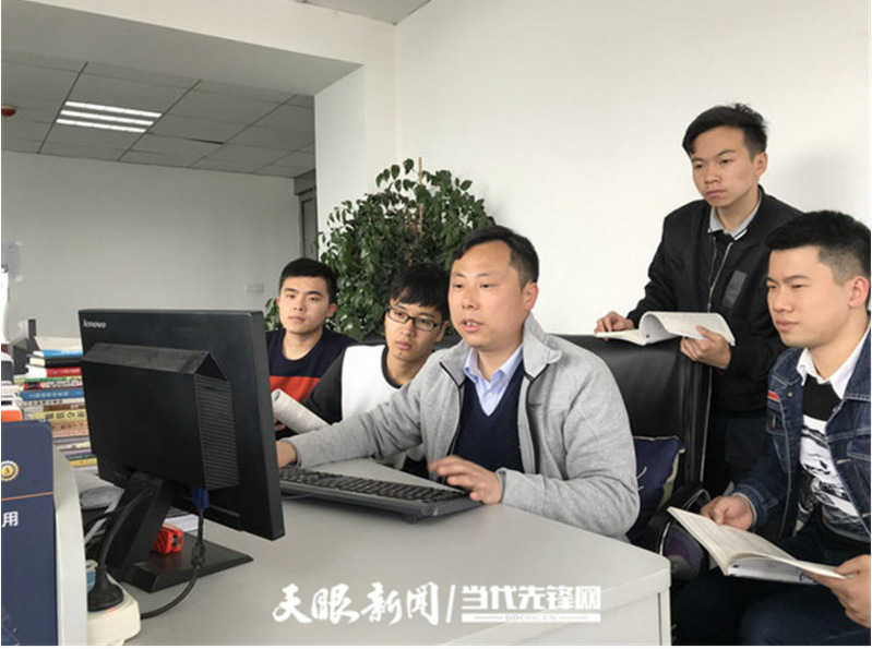 李少波(左三)正在与学生讨论问题(受访者供图)