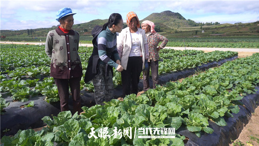 张万萍(左二)在威宁蔬菜基地指导务工群众种菜