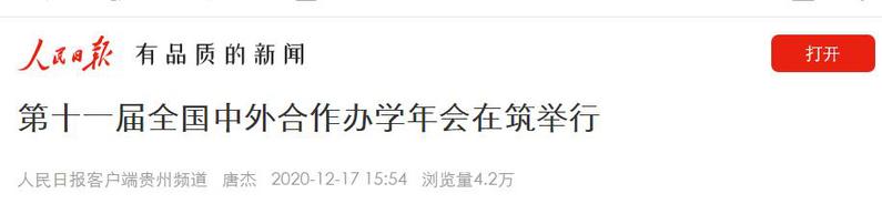 12月16日,第十一届全国中外合作办学年会线上举行,此次年会主题是“十四五”时期中外合作办学高质量发展。由于疫情防控形势要求,会议在线上举办,主会场设立在贵阳。