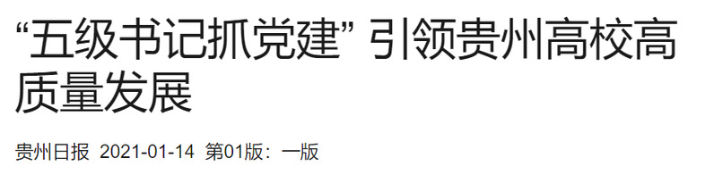为落实新时代党的建设总要求,2020年4月,贵州提出研究建立教育系统“五级书记”抓党建的制度,压紧压实党建的主体责任,形成书记抓、抓书记,一级抓一级,上下联动、相互衔接、齐抓共管的党建工作责任体系,引领高校党的建设再上新台阶。