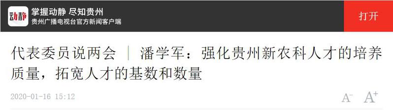 动静(贵州广播电视台官方新闻客户端):代表委员说两会 | 潘学军:强化贵州新农科人才的培养质量,拓宽人才的基数和数量