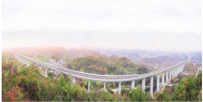 一列动车在沪昆高铁贵州段“穿行”。贵州日报天眼新闻记者 邓刚 摄