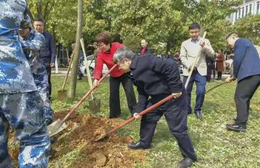 欢送仪式前,为厚植爱国主义教育,体现贵州大学在国防教育事业中的担当与责任,贵州大学领导、相关职能部门负责人、44名新征入伍学生代表及其家长在西校区一食堂后门举行了首届强军林植树活动。