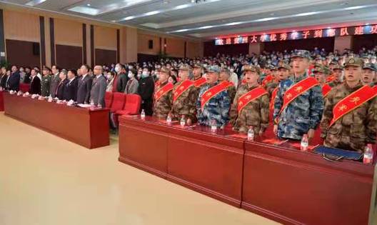 数学与统计学院学生黄江贵作为应征入伍新兵代表发言。他说,作为一名青年大学生,积极响应党和国家号召投身军营,是历史赋予青年人光荣而伟大的 使命,也是有志青年应尽的义务。我们定将不负这份荣耀,担负起保卫祖国安宁和人民幸福的重托,在激情燃烧的岁月到军营里去建功立业。