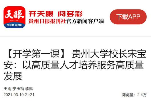 据悉,本次专题讲座是贵州大学2021年春季学期“开学第一课”系列讲座的其中一讲,各学院设立分会场,组织师生线上同步听课。
