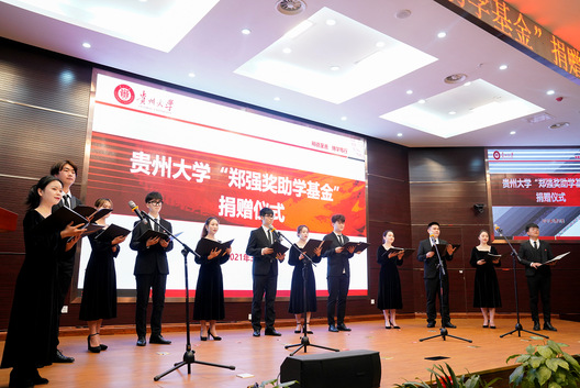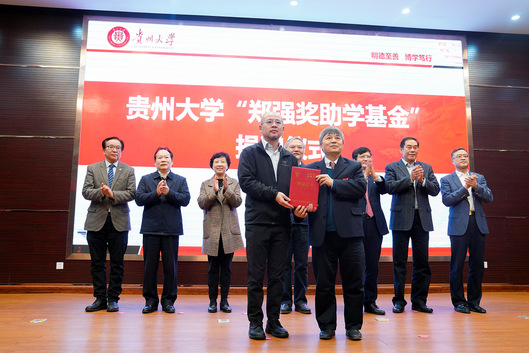 3月21日,贵州大学“郑强奖助学基金”捐赠仪式举行。贵州省人大常委会副主任何力,贵州省政协副主席、贵州大学原党委书记、校长陈坚,贵州省人大常委会原党组书记、副主任、贵州省关工委常务副主任、贵州大学原党委书记龙超云,贵州省人大常委会原副主任陈鸣明,贵州省人大教育科学文化卫生委员会主任委员朱新武,太原理工大学党委书记、贵州大学原校长、“郑强奖助学基金”管理委员会荣誉主任郑强,贵州大学校长宋宝安院士等出席仪式。贵州大学党委书记李建军致辞。贵州大学副校长李军旗主持。