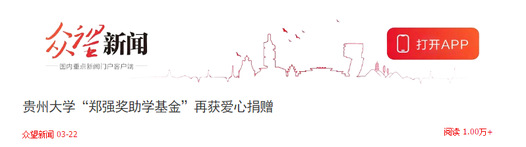 据了解,2012年6月至2017年6月,郑强教授担任贵州大学校长。2017年11月12日,为奖励郑强教授对贵州教育事业、贵州大学发展所做的重要贡献,贵州省委省政府授予郑强教授“贵州省高等教育特别贡献奖”荣誉,并给予50万元奖励。郑强教授将50万元奖励悉数捐赠给贵州大学,同时在郑强教授爱国爱教育情怀的感召下,社会各界人士纷纷捐赠献出爱心。截至2021年3月,“郑强奖助学基金”资金总额已逾1117万元。累计资助和奖励48名学生。