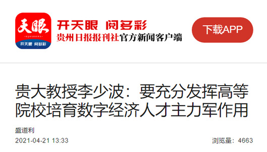 在贵州大学机械工程学院院长、现代制造技术教育部重点实验室常务副主任李少波看来,如今,数字经济已经由以往的资源密集型和劳动密集型向智力密集型转变,数字经济对于高素质人才的依赖高于以往任何经济范式,贵州数字经济发展对人才的需求也更加紧迫。