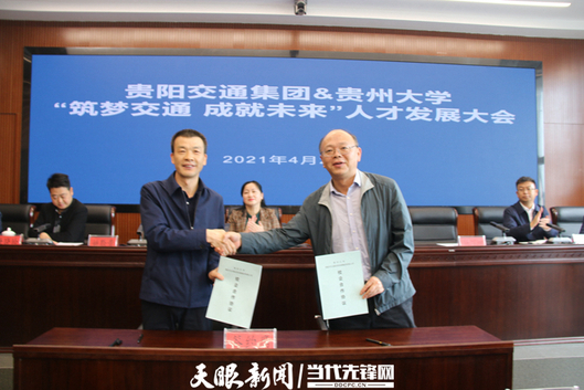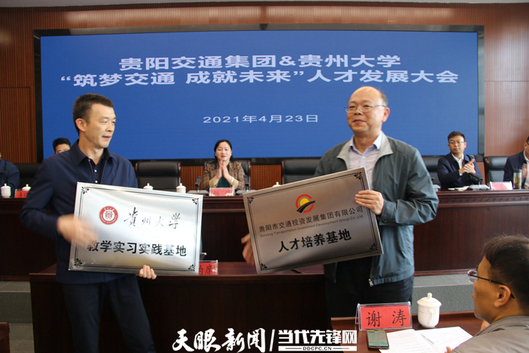 “贵阳现在是人才净流入的城市,欢迎同学们毕业后留在贵阳参与到‘强省会’的时代潮流中……”,贵阳市国资委党委委员、副主任韩荣热情相邀。4月23日,由贵阳市国资委指导主办,贵州大学与贵阳市交通投资集团共同举办的“2021年‘筑梦交通 成就未来’人才发展大会”在贵阳举行。来自贵州大学土木学院、建筑与城市规划学院、勘察设计研究院、土木工程学院道桥系、地下及岩土系、建筑工程系的相关负责人与近百名研究生、本科生参加大会,会上还进行了“人才培养基地”和“教学实习实践基地”签约和揭牌。