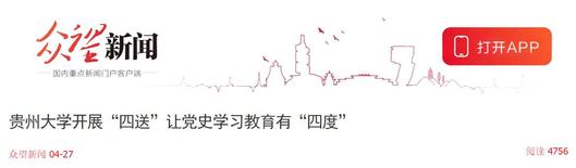 贵州大学党委高度重视党史学习教育,迅速成立党史学习教育和“牢记殷切嘱托、忠诚干净担当、喜迎建党百年”专题教育领导小组,多措并举推进党史学习教育工作,在全校范围内掀起党史学习教育热潮,通过送宣讲 、送教材、送培训和送技能,让党史学习教育有高度、有深度、有广度和有温度。