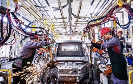 铜仁万山区万仁汽车集团已入选贵州省千亿级先进装备制造龙头企业10强,实现年产值100亿元,带动100多家上下游企业发展。图为万仁汽车的工人正在作业。(彭俊 摄)