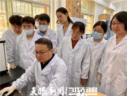 祁小四带领团队学生观察、分析实验数据