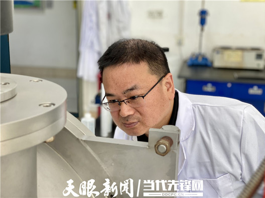 祁小四正在认真观察设备中的实验情况