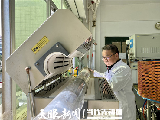实验室里,祁小四正在进行泡沫石墨烯材料的实验