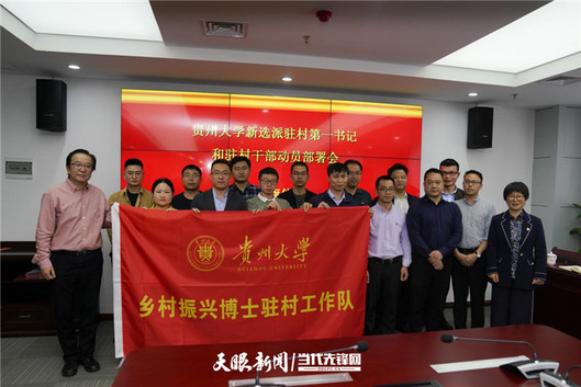 4月30日,贵州大学15名新选派和继续驻村的第一书记和驻村干部,从校党委书记李建军手中接过“乡村振兴博士驻村工作队”旗帜,他们将于近日正式奔赴黔西南州贞丰县龙场镇、小屯镇、平街乡等乡镇开展乡村振兴帮扶工作。