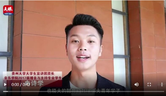 “在听了谌贻琴书记饱含深情的期许和殷切嘱托后,作为青年学子倍感振奋,极大鼓舞了自己拥抱新时代、奋进新时代的热情。”贵州大学大学生宣讲团团长、音乐学院2017级播音与主持专业学生冉诗学说。