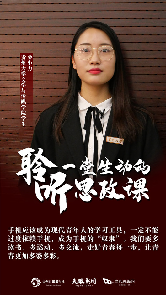 听了思政课后,贵州大学文学与传媒学院学生金小力更加坚定了自己在贵州发展的信心和决心。“谌贻琴书记从党史讲到贵州发展,再到青年人在贵州发展,摆事实、讲道理。愈发让我感到贵州‘黄金十年’取得的成绩来之不易,贵州的未来大有可为。”