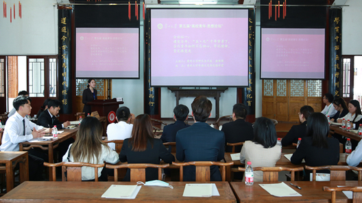 主持人邓园园介绍道,十年前的今天,习近平总书记视察贵州大学、在中国文化书院参与第三期“溪山论道”读书会活动并发表重要讲话。十年后的今天,全国百余所高校青年代表们再聚文化书院及云端会场,重温“五·九”重要讲话精神、研习习近平新时代中国特色社会主义思想。