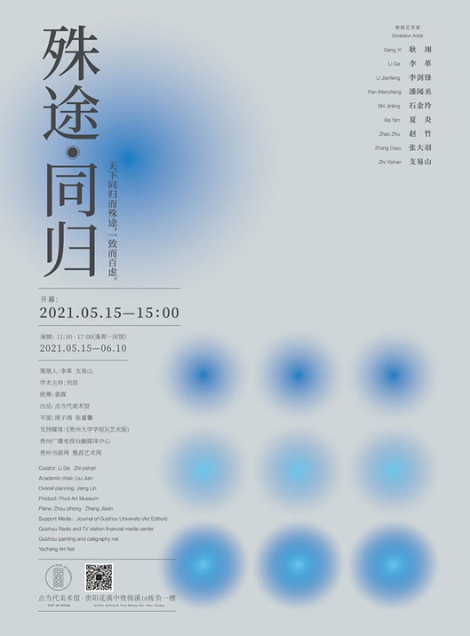点·当代美术馆是由贵州青年画家支易山创建的私人美术馆,整体以黑白灰色调的极简风格为主。作为该馆的开幕大展,《殊途·同归》集结了耿翊、潘闻丞、赵竹、石金玲、夏炎、张大羽、李建峰、李革、支易山等9位画家的40余件作品。