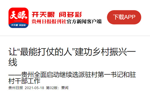 4月28日,全省新选派驻村第一书记和驻村干部动员部署电视电话会议在贵阳召开,要求各级党委和政府要把“最能打仗的人”选派到乡村振兴一线,抓好工作体系和制度机制衔接,推动驻村帮扶取得实效。随后,省委党建办印发《关于持续选派乡村振兴驻村第一书记和工作队的通知》,科学部署派驻工作、建立健全体制机制,为巩固拓展脱贫攻坚成果、全面推进乡村振兴提供组织保证和人才支持。